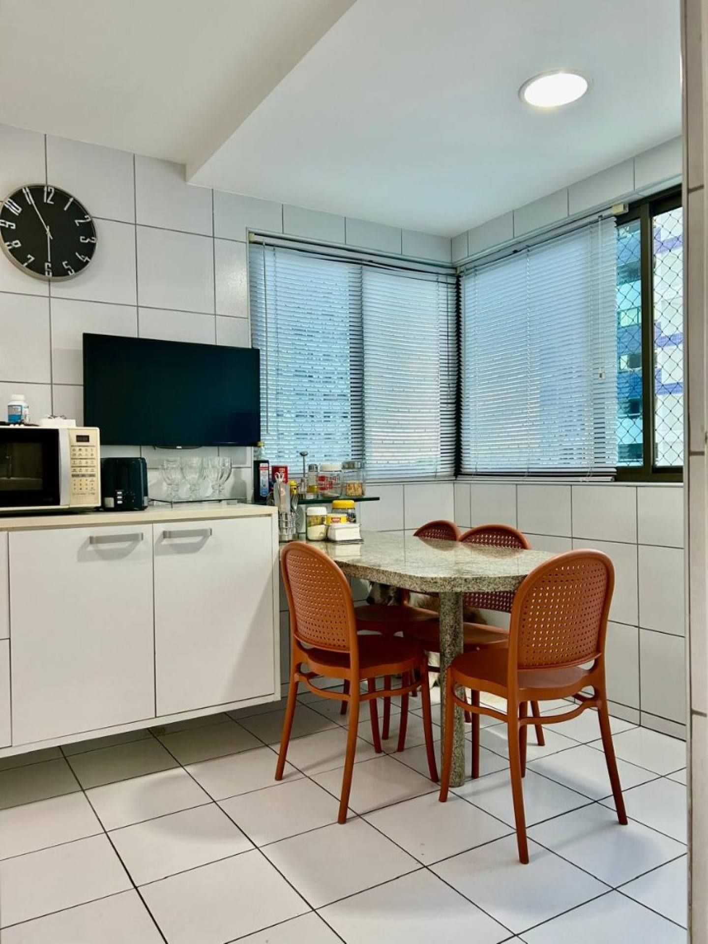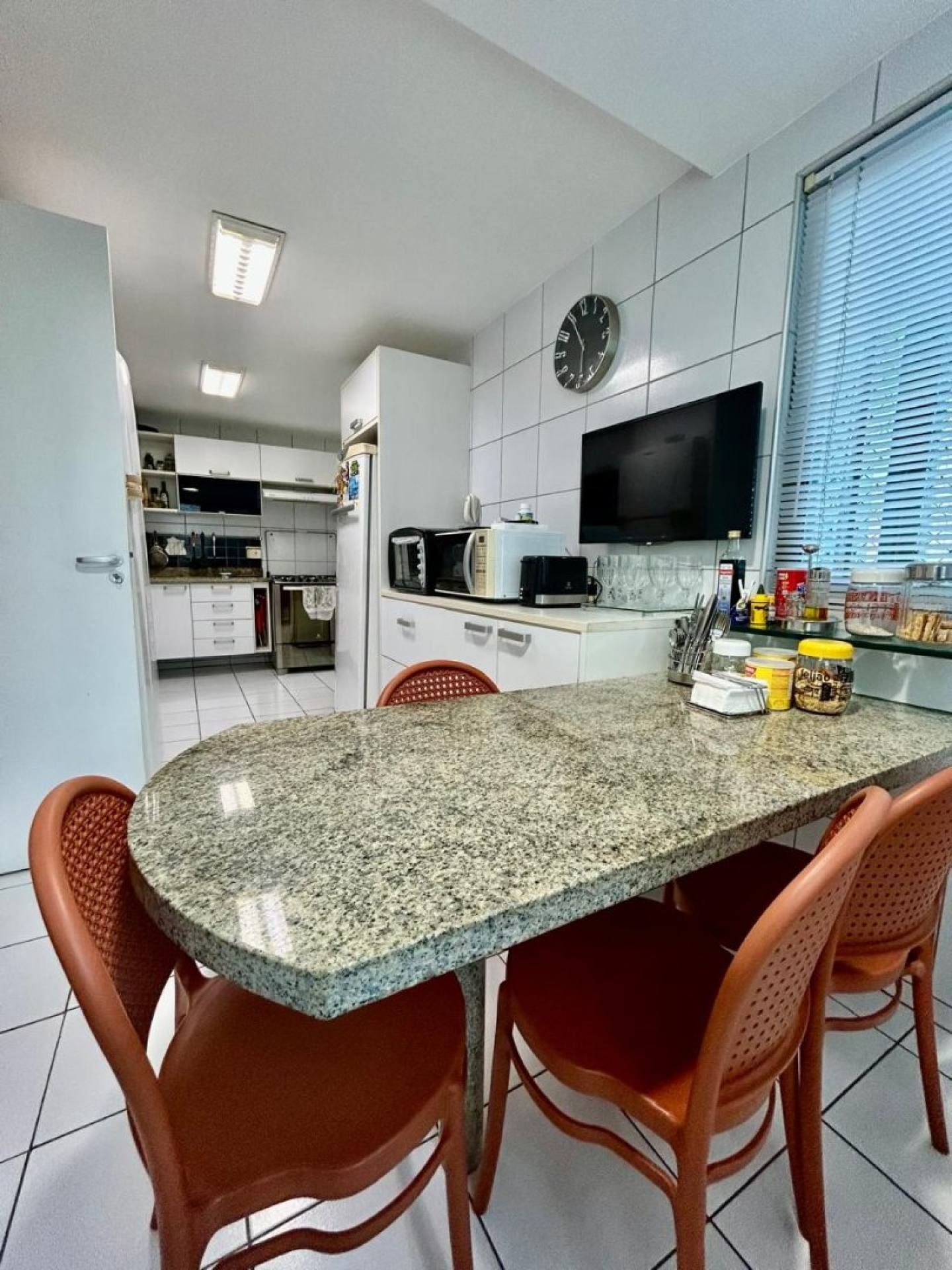 A cozinha é funcional e equipada com armários, além de contar com copa e dependência completa de empregada, agregando praticidade ao dia a dia.